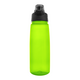 Корпус бутылки для воды изготовлен из пластика (полипропилен) высокого качества. Запах отсутствует, крышка бутылки открывается за счет нажатия на кнопку, которая оснащена фиксатором для предотвращения случайного открывания крышки. В крышке встроена ручка для переноски или фиксации на ремне, что позволяет удобно пить воду на ходу или управляя рулём велосипеда одной рукой.