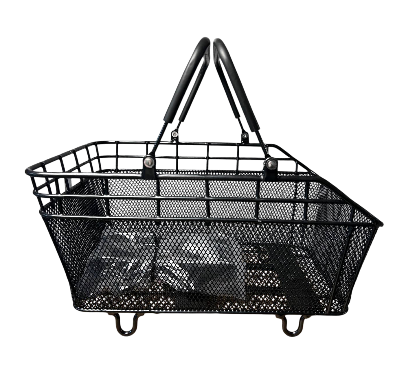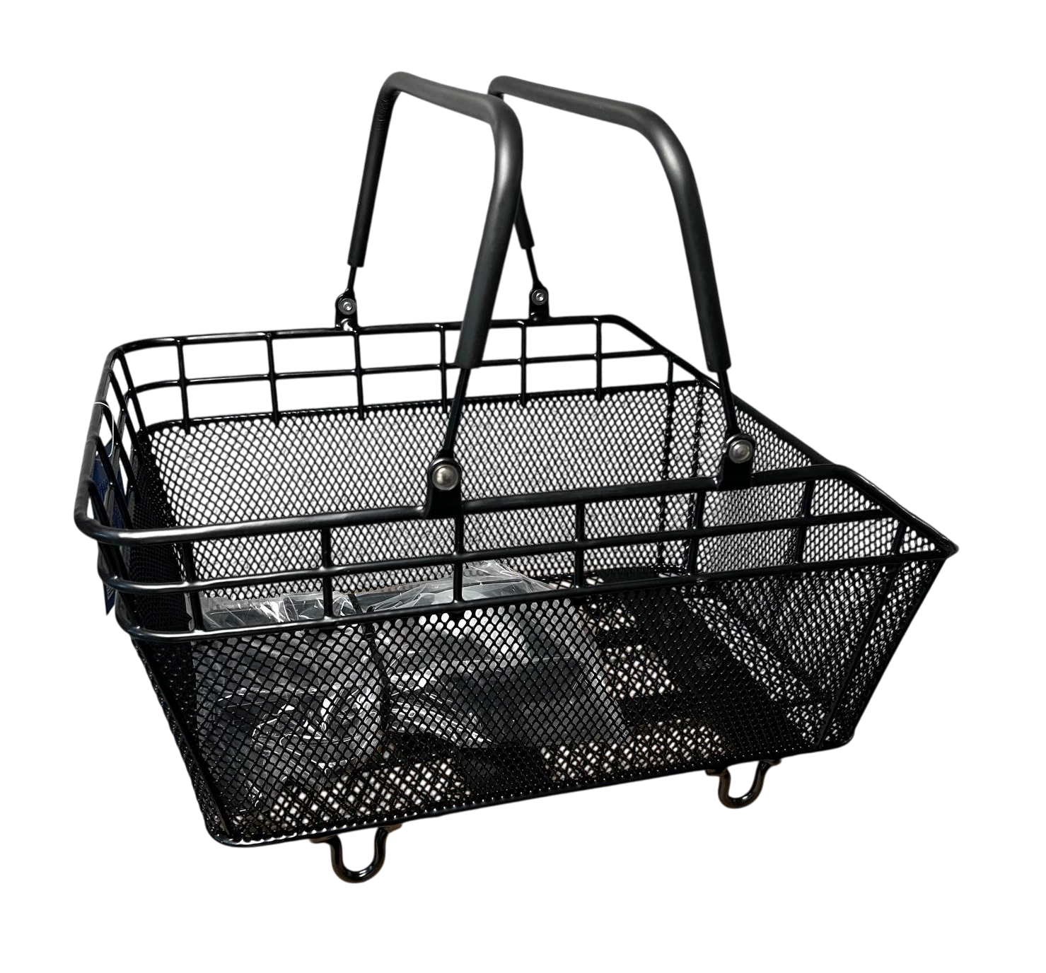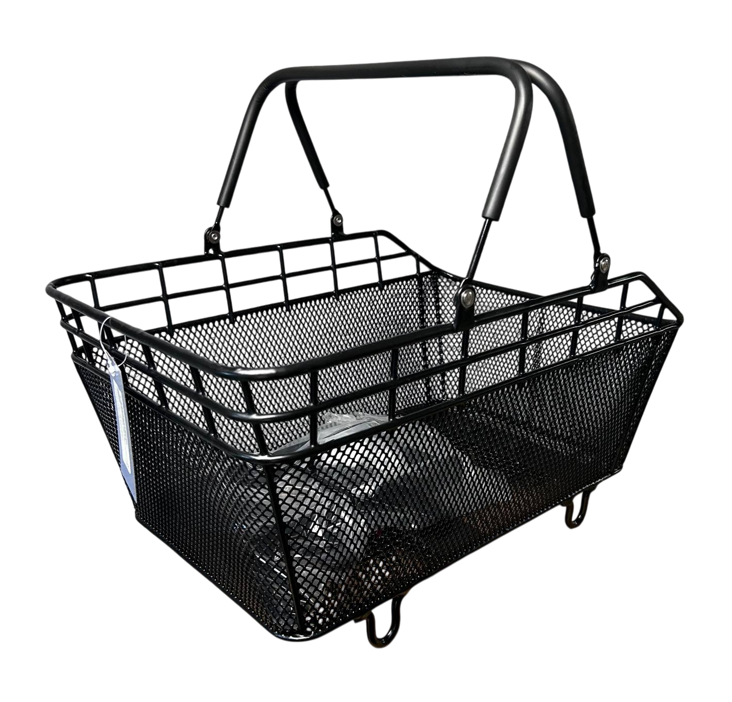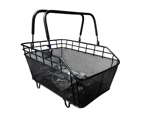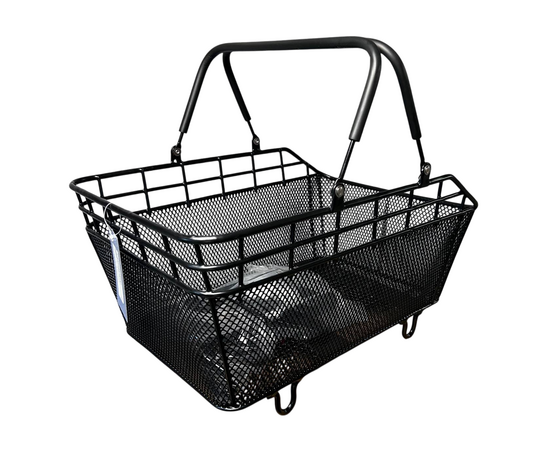 Корзина велосипедная, задняя со складывающейся ручкой. Крепится к багажнику велосипеда.
