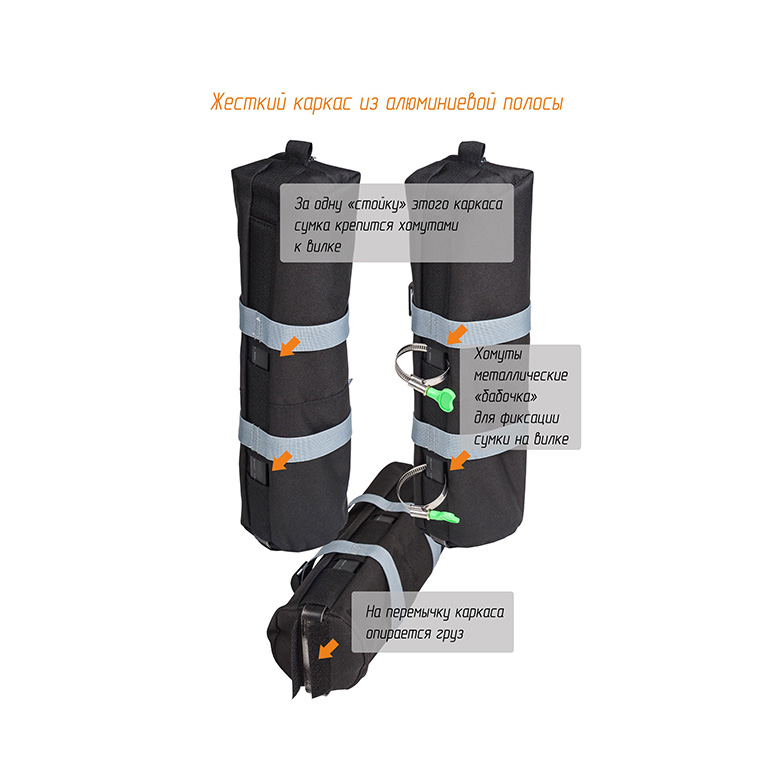 Велосумка COURSE на переднюю вилку велосипеда предназначена для перевозки полезных вещей на велосипеде. В нашем случае мы предлагаем использовать для транспортировки небольших грузов велосипедную вилку. Если рама и багажник велосипеда уже заняты сумками и рюкзаком, то вилка может взять на себя дополнительный полезный груз и распределить нагрузку по всему велосипеду, включая велосипедную вилку.
