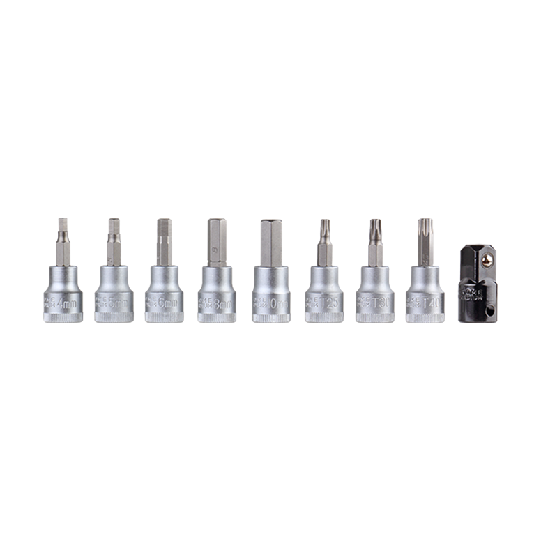 В комплекте биты: шестигранник 4, 5, 6, 8, 10 мм. TORX 25, 30, 40. Адаптер 3/8"Dr.*1/2"Dr.
