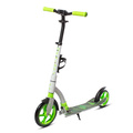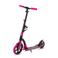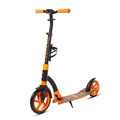 Самокат чёрный, алюминиевый, новый оригинальный дизайн, передний амортизатор, складной, регулируемая высота руля, резиновые ручки фиксируемые 2-мя эксцентриками, нагрузка до 100кг, ножной тормоз, колеса перед 230мм, зад 180мм с герметичными подшипниками ABEC-9, ремень для переноски, подножка, флягодержатель, вес 4,8кг, инд. уп.