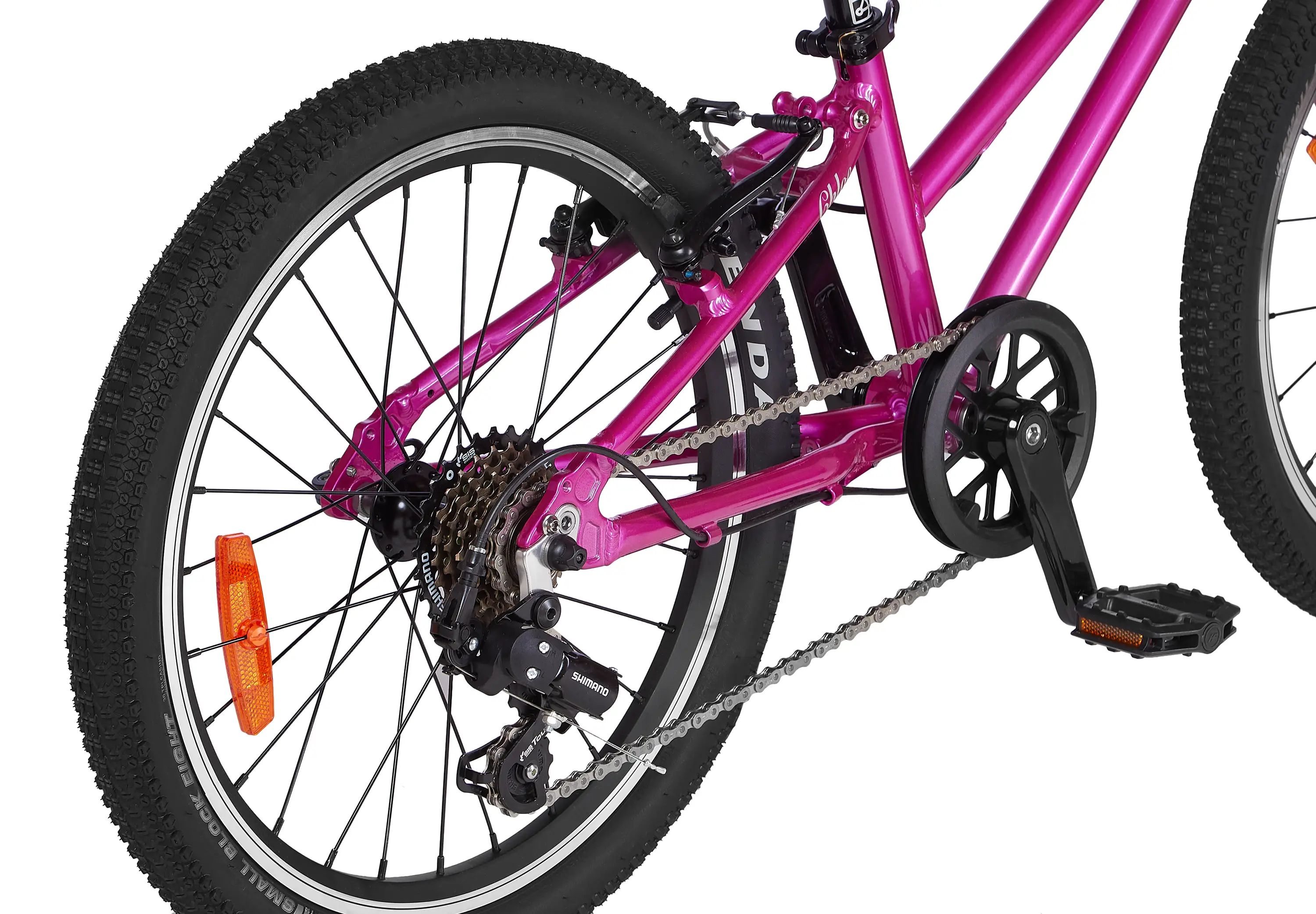 Chloe 20 Race — модель с 7 скоростями и 20-дюймовыми колесами для подрастающих райдеров 6−8 лет ростом 115−130 см с регулировкой высоты седла. Переключение передач на руле интуитивно понятно ребенку, а выбор скорости помогает преодолевать подъемы и неровности дороги.