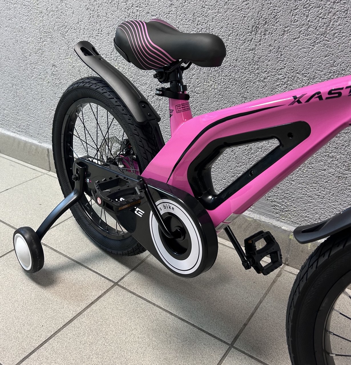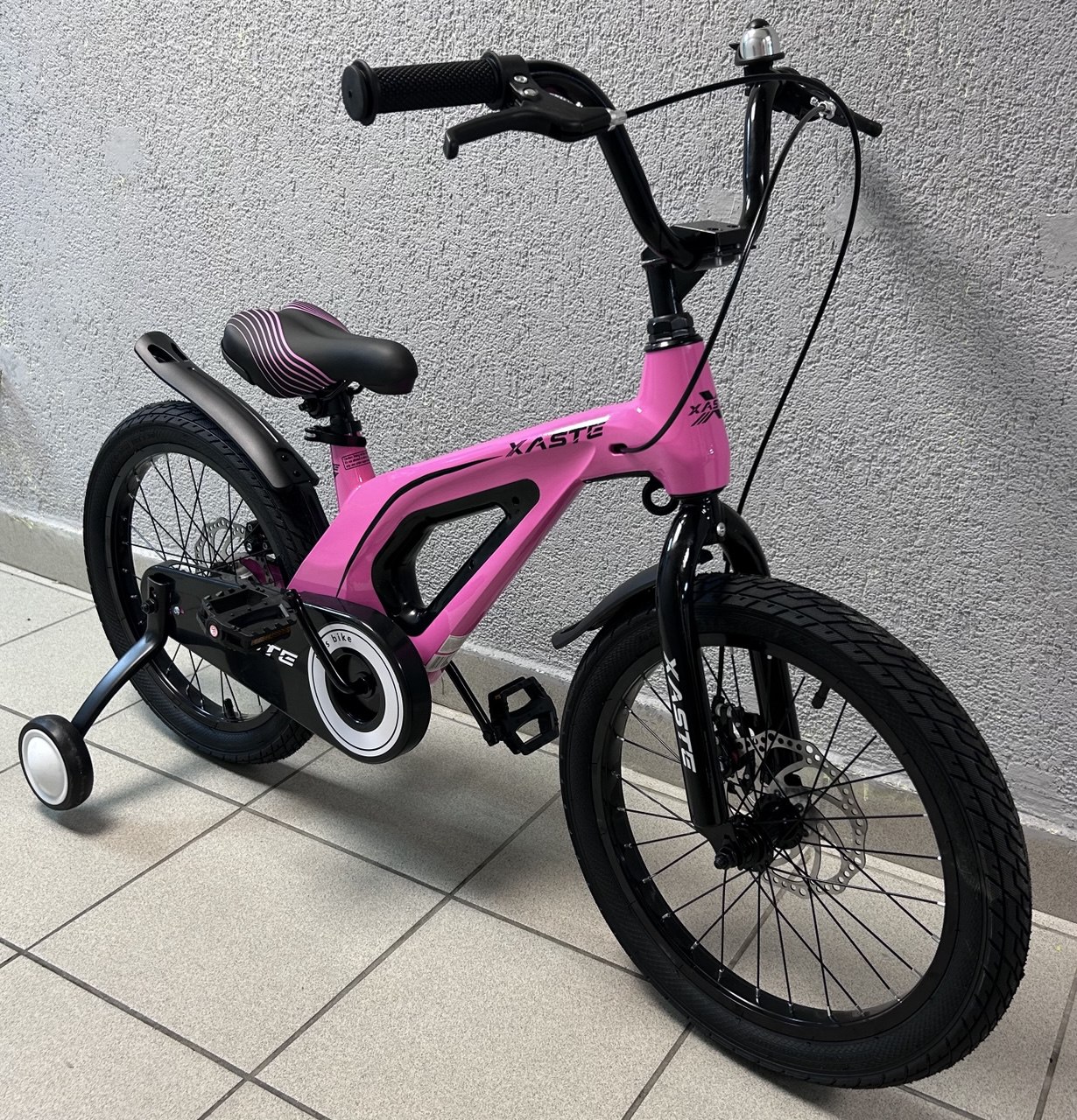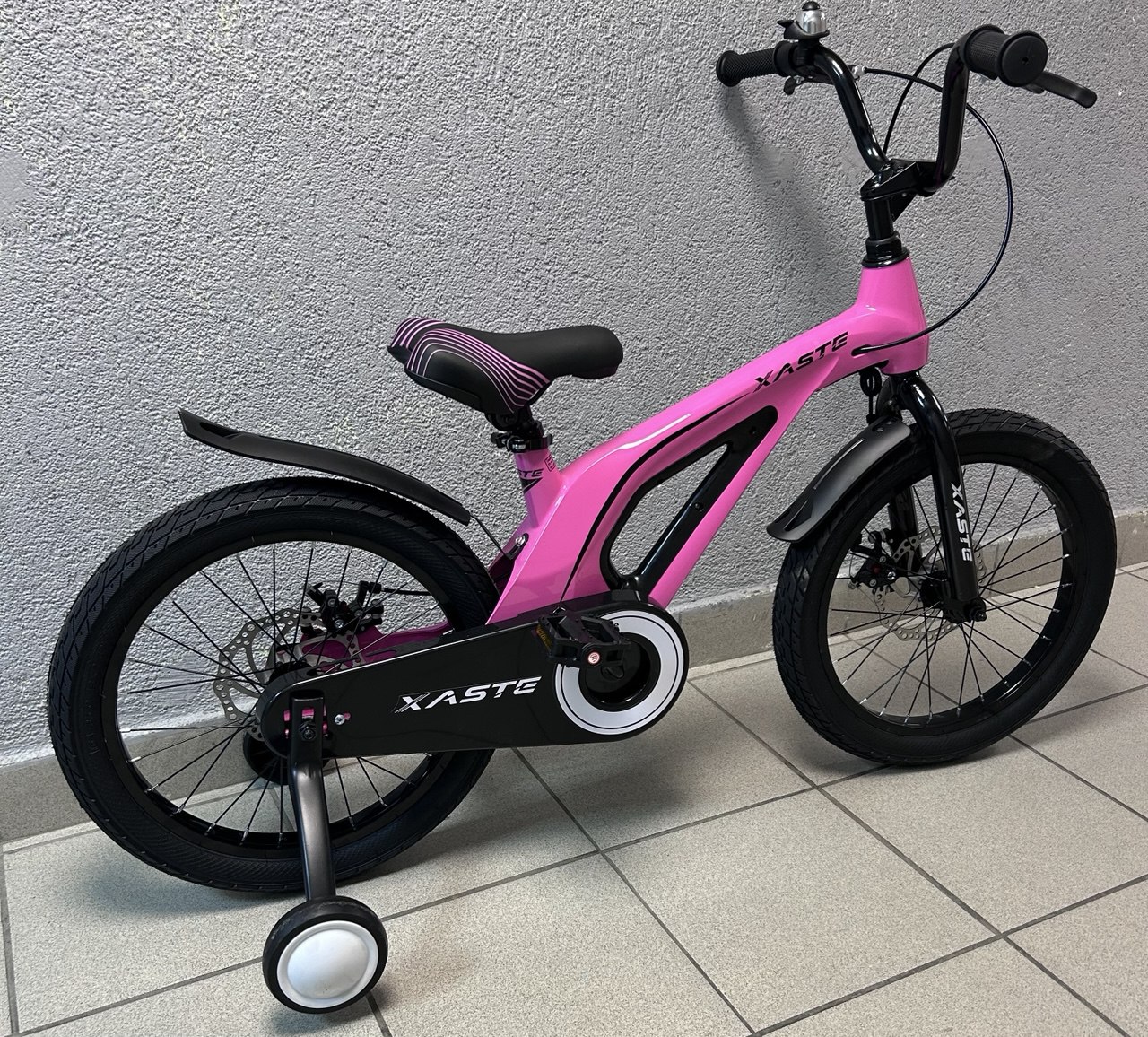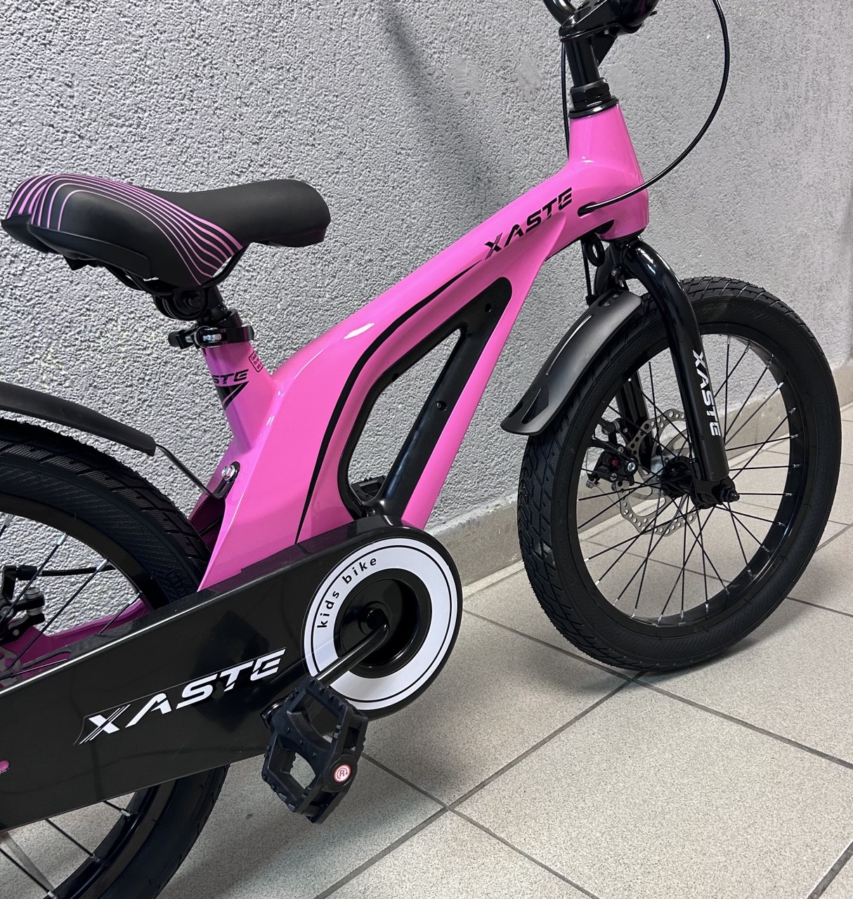 Xaste Space 18 — лёгкий и надёжный детский велосипед для детей 4–7 лет (рост 105–125 см). Рама из магниево-алюминиевого сплава делает его лёгким и удобным в управлении, а продуманная геометрия обеспечивает уверенную посадку. Модель оснащена механическими дисковыми тормозами для безопасного и предсказуемого торможения, жёсткой стальной вилкой, прочными 18″ колёсами и широкими покрышками 2.35″ для устойчивости и комфортной езды по асфальту и парковым дорожкам.