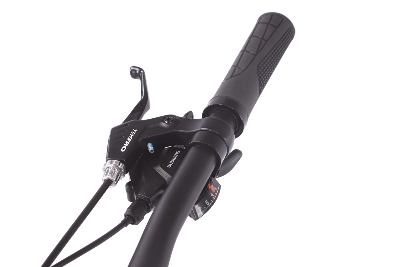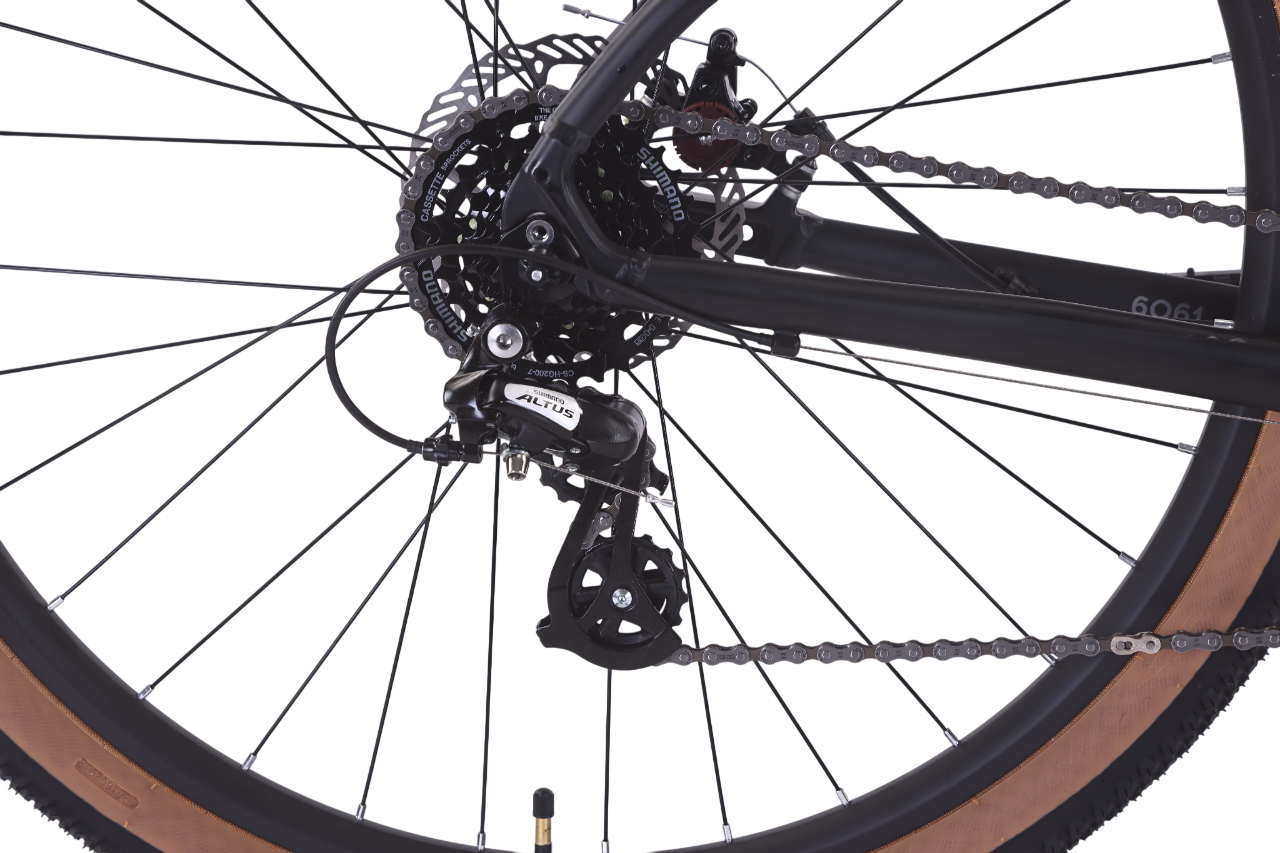 - Надежная Трансмиссия Shimano Altus: Передний и задний переключатели Altus обеспечивают четкое и надежное переключение 7 скоростей (кассета 12-32t), справляясь с подъемами и спусками. Цепь KMC Z7 гарантирует долговечность.