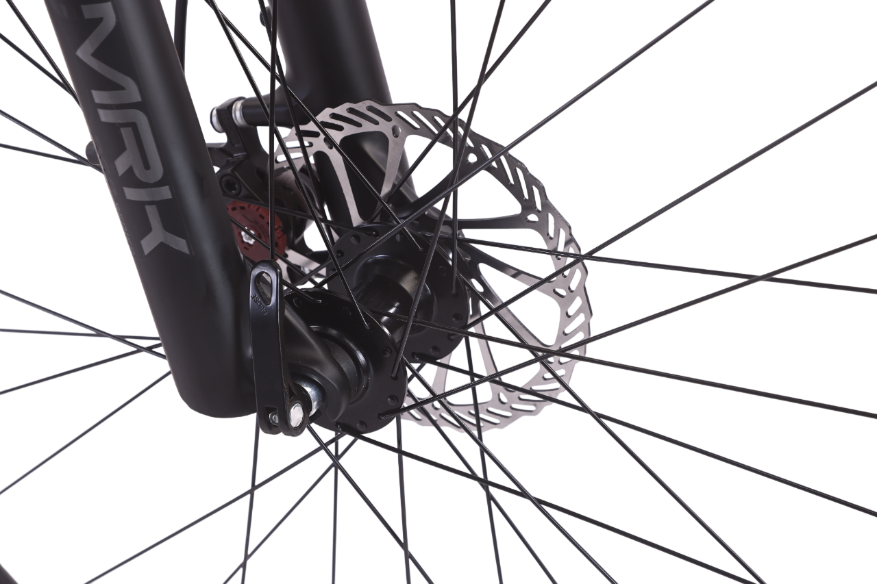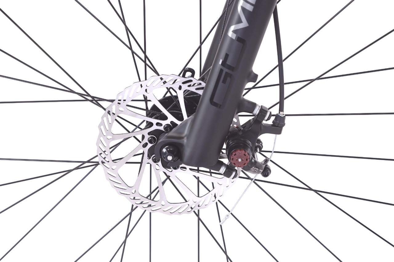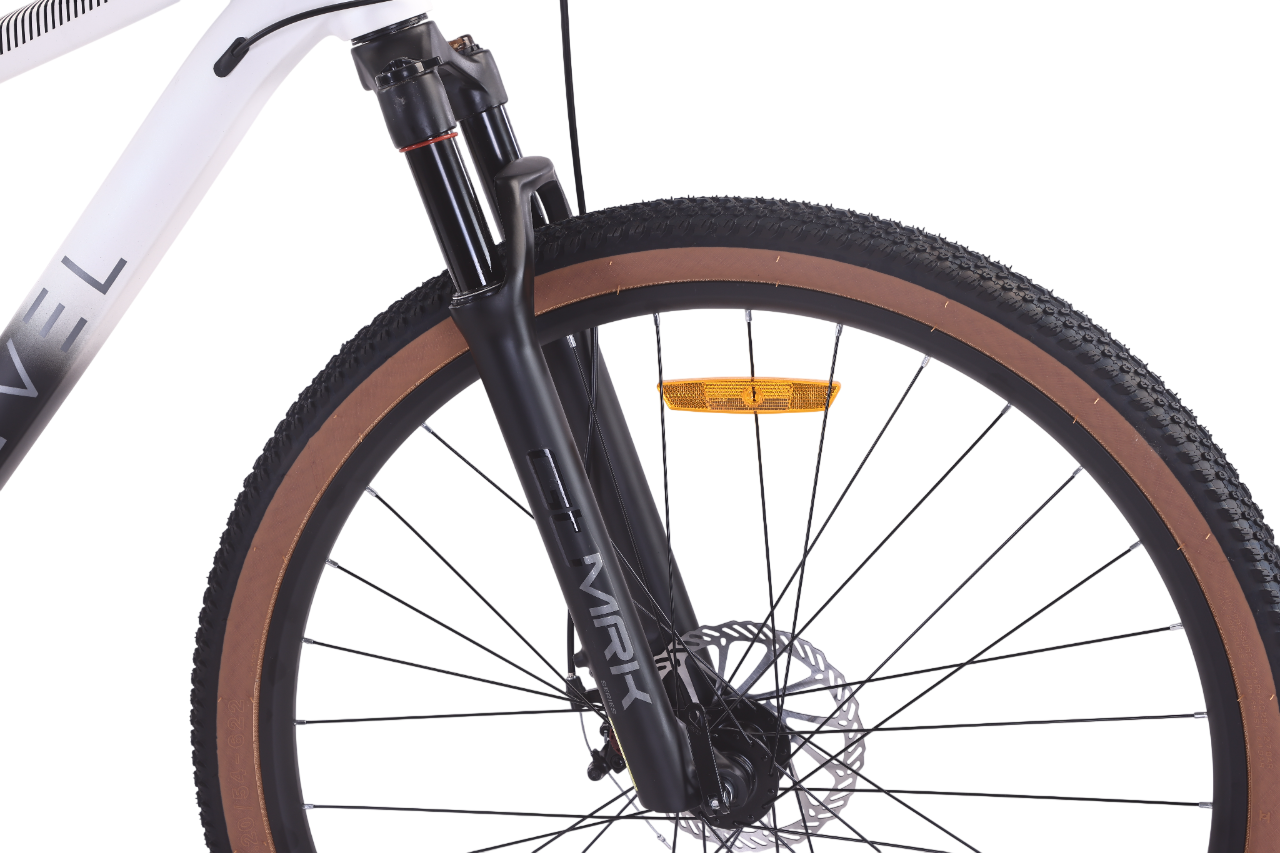 - Комфортная Амортизация: Передняя вилка GTMARK с ходом 100 мм и механическим локаутом сгладит неровности дороги, сделав поездку комфортнее.