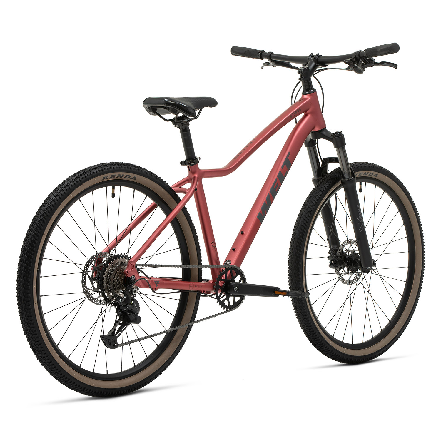 Welt Sienna - это женская модель среднего уровня на 27 колесах, которая подходит для фитнес-катания и езды по пересеченной местности. Рама отличается особой эстетикой благодаря компенсации швов рамы (швы практически не заметны) и внутренней проводке тросов, которая также защищает их от повреждения. Рама способна выдерживать повышенные нагрузки благодаря конусному рулевой стакану.