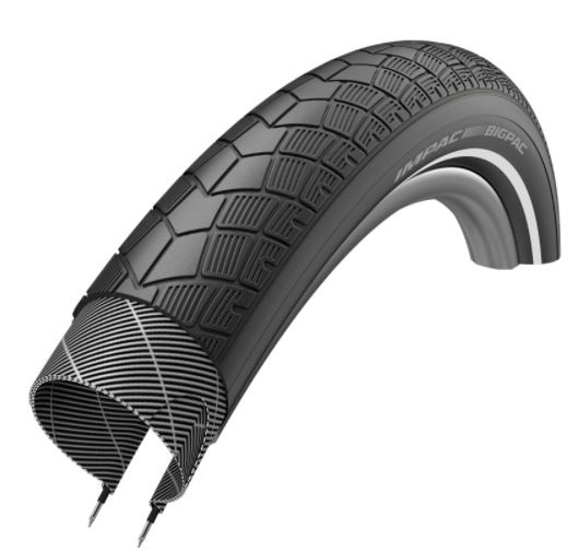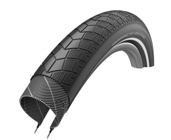 Покрышки Impac BigPac, произведённые компанией Schwalbe, основаны на легендарном дизайне Big Apple. Большой объём обеспечивает высокий комфорт даже на самых плохих дорогах, при этом покрышка сохраняет лёгкий и быстрый накат.